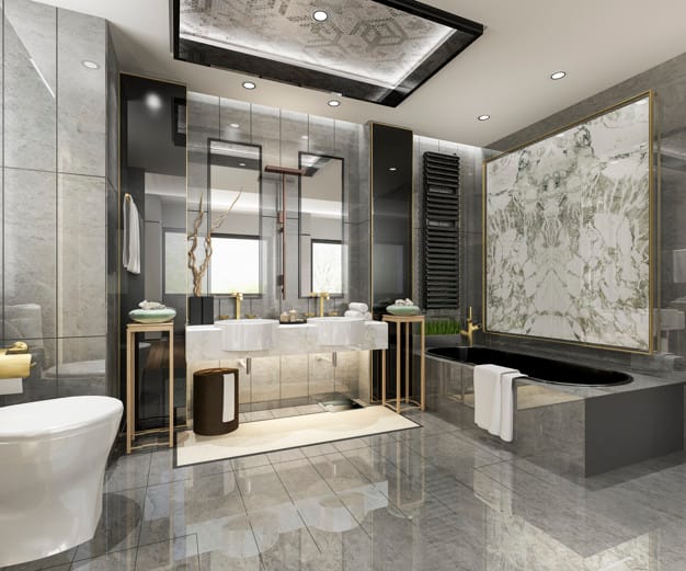 Spaced out bathrooms are hard to light up properly, these spaces really benefit if there is some natural light from a window. What is ideal, it’s not always a reality. For big bathrooms with no window, incorporate some wall lighting like around the mirror and above the bath or shower.